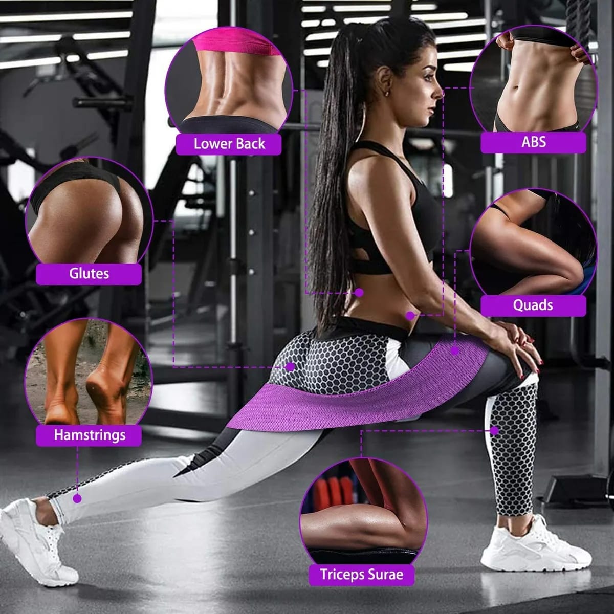 Material: Hechas de tela de poliéster y látex de primera calidad, las bandas de resistencia son duraderas y resistentes. El diseño antideslizante hace que no se enrollen hacia arriba o hacia abajo mientras hace ejercicios. La superficie de tela también protegerá su piel